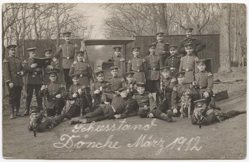 10 »vor der Geschützrevision« im Hof der Artilleriekaserne im Marstall. »”« »Lux, Zeidler, Schul,« Hier klicken, um zu den Einzelfoto-Scans dieser Doppelseite zu springen. |
