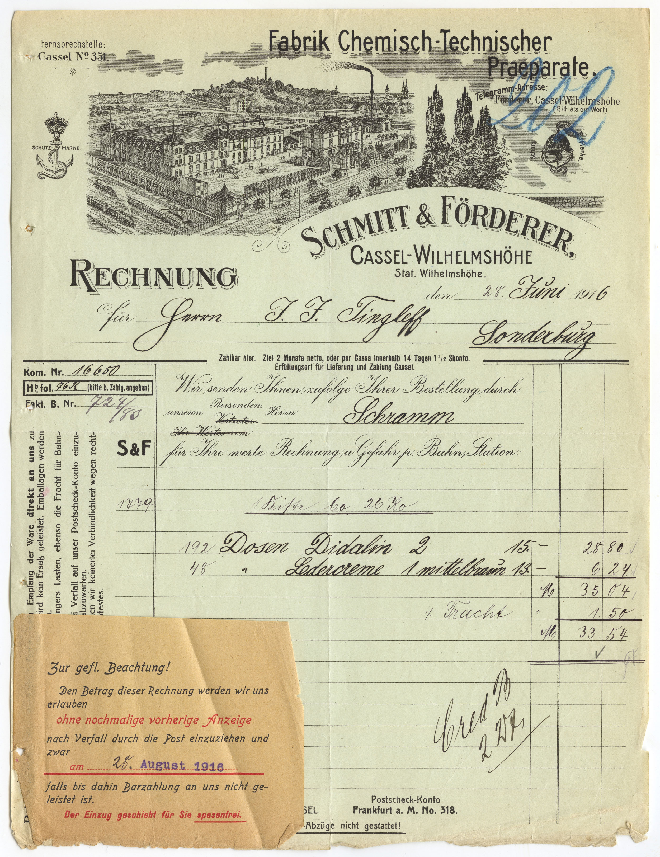 Kaiser-Drogerie, Wilhelm Krug Nachfolger, Inhaber: Gebrüder Ott, Wilhelmshöher Allee 304. Bestell-Postkarte von 1928.*MA