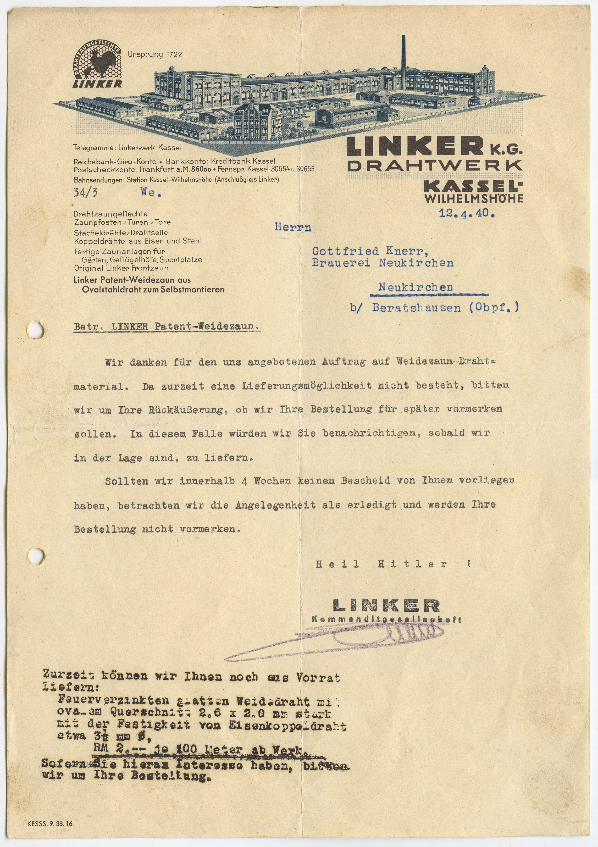 Darin viele Anzeigen von Wilhelmshöher und Kasseler Firmen (nur die Wilhelmshöher Firmen sind in die folgende Liste aufgenommen): [Seite 4:] Heinrich Schwedes, Ansichtskarten, Reiseandenken, Geschenkartikel, Wilhelmshöher Allee 313 und Verkaufspavillon am Betriebsbahnhof der Straßenbahn in Wilhelmshöhe | Brot- und Feinbäckerei Gottlob Markus, Lange Straße 13 | Schlossermeister H. Wagner, Wilhelmshöher Allee 333 | »Ihren Braten zum Reichskriegertrag nur von Fleischermeister Wilh. Hahn«, H. utte Nachfolger, Wilhelmshöher Allee 283 | Milchhandlung Georg Hoff, Wilhelmshöher Allee 281, 287 und 315 | Lebensmittel, Weine, Spirituosen, Hausschlachterei M. Schreurs, Wilhelmshöher Allee 276 | »Guirlanden zum Reichskriegertag liefert Blumenhaus Börner«, Kunoldstraße 22 | [Seite 5:] »Kochend aus der Wasserleitung strömt das Wasser, wenn Sie aan Stelle des Zapfhahnes einen Askania-Zapfhahnsieder anbringen lassen. Richard Riehl«, Wilhelmshöher Allee 289 | Malermeister, Schildermalerei Ludwig Ritz, Wilhelmshöher Allee 274 | [Seite 6:] Ansichtskarten, Reiseandenken, Büroartikel Ernst Stahr, Wilhelmshöher Allee 322 | Auto-Vermietung Wilhelmshöhe Oskar Flörke, Wilhelmshöher Allee 315 | Schuhmachermeister Heinrich Stein, Wilhelmshöher Allee 277 | Kunst-, Bau und Möbelschreinerei August Noll, Lange Straße 21 | Schuhinstandsetzung Wilhelmshöhe, Wilhelmshöher Allee 304 im Hause der Kaiser-Drogerie | Möbel W.Höhmann, Kunoldstraße 9 | [Seite 7:] Drogerie Wilhelmshöhe, Inhaber Hans Henss | Malergeschäft Müller & Schalles, Inhaber Wilhelm Schalles, Wilhelmshöher Allee 317 / Ecke Baunsbergstraße | Holzgroßhandlung Emil Liebeck, Wilhelmshöher Allee 272 Lebensmittel Heinrich Grandjot, Wilhelmshöher Allee 292 | [Seite 8:] Feinkost, Wandernahrung Georg Bohne, Wilhelmshöher Allee 279 | »Sie kochen doch ein?? Also decken Sie Ihren Bedarf ... bei Georg Burgtorff«, Wilhelmshöher Allee 279 | »Uniformen und Mäntel für sämtliche Formationen sowie feine Herrengarderobe« Selmar Fleischhauer, Lange Straße 21 | [Seite 9:] Elektro-Kühlschrank, Henkels elektrische Werke, Hunrodstraße 4 | Lebensmittel Martin Conrad, Wilhelmshöher Allee 326 | »Brot- und Backwaren, Schokoladen, Pralinen, Keks erster Firmen« M. Wittich, Wilhelmshöher Allee 283 | Fleischermeister Georg Seebach, Lange Straße 66, Landgraf-Karl-Straße 1 Ecke Wilhelmshöher Allee | [Seite 10:] Molkerei Friedrich Lindemann, Kunoldstraße 44 | Schumacher Jakob Lechtschinsky, Lange Straße 60 | Maurermeister Ludwig Rennert, Lange Straße 61 | Schreinerei Willi Fremder, Wasserweg 2 | [Seite 11:] Radioapparate Otto Bernhardt, Wilhelmshöher Allee 322 | Friseur Philipp Krieger, Wilhelmshöher Allee 313 | »Wir spannen Gardinen. waschen, bügeln und heißmangeln« Jünemann, Baunsbergstraße 1/2 | Bäckerei Karl Ruess, Wilhelmshöher Allee 324 Schreinerei Robert Franke, Wilhelmshöher Allee 294 | Blumen Heinrich Göllner, Landgraf-Karl-Straße 1 | Schreinerei Gebrüder Butte, Lange Straße 54 | Lebensmittel Friedrich Banze, An den Eichen 2 | Feinkosthaus Würzberg, Inhaber K. Knobbe, Wilhelmshöher Allee 295 | [Seite 12:] Baustoffhandlung Ernst Gehl & Co., Wilhelmshöher Allee 253 ¾ | Schneidermeister August Fey, Wilhelmshöher Allee 300 | »Ich ziehe um! Ab 25.6.33 befindet sich mein Geschäft Wilhelmshöher Allee 311 in den neu hergerichteten hygienisch einwandfreien, erstklassigen Räumen. (Neben Neubau Schwedes) Fleischermeister Louis Kleinschmidt | Lebensmittel, Hausschlachterei W. Siebert, Kunoldstraße 16 | Schuhinstandsetzung Herkules, Lange Straße 15 | [Seite 13:] Fleischermeister Franz Döring, Wilhelmshöher Allee 310 | Dach- und Schieferdeckermeister August Franke, nur Wasserweg 4 | »Zum Reichskriegertag kaufe Deine Zigarren und Weine beim Frontkameraden Hermann Göbel am Bahnhof Wilhelmshöhe« | Schuhwarenhandlung Georg Hektor, Kunoldstraße 32 | [Seite 14:] Kaffee- und Pensionshaus Dohn, Mulang [Kurhausstraße 8] [mit Bild auf S.15] | Diätkur- und Erholungsheim Sonnenhof, Krähhahnstraße 8 | Parkkaffee u. Fremdenheim A. Mössinger, Mulang, »Kaffeeaufgießen gestattet« [Kurhausstraße 2] [mit Bild auf S.15] | Schloßhotel Wilhelmshöhe, Inhaber M. Stecker | Gast- und Kaffeehaus »Zeche Marie«, Brasselsberg | Gaststätte Palmenbad J. O. Köberich, Rasenallee 27 [Kurhausstraße 25] [mit Bild auf S.15] | Burgfeld-Kaffee, Burgfeldstraße 1 [mit Bild auf S.15] | Gasthaus Ledderhose, Mulang [Löwenburgstraße 1] [mit Bild auf S.15] Gasthaus Rammelsberg, Inhaber Albin Thiele, Rammelsbergstraße 4 | Gasthaus Wimmer | Gasthaus am Fuße der Kaskaden, Inhaber Fritz Block [mit Bild auf S.15] | Kurhaus Dr. Rohrbach |
