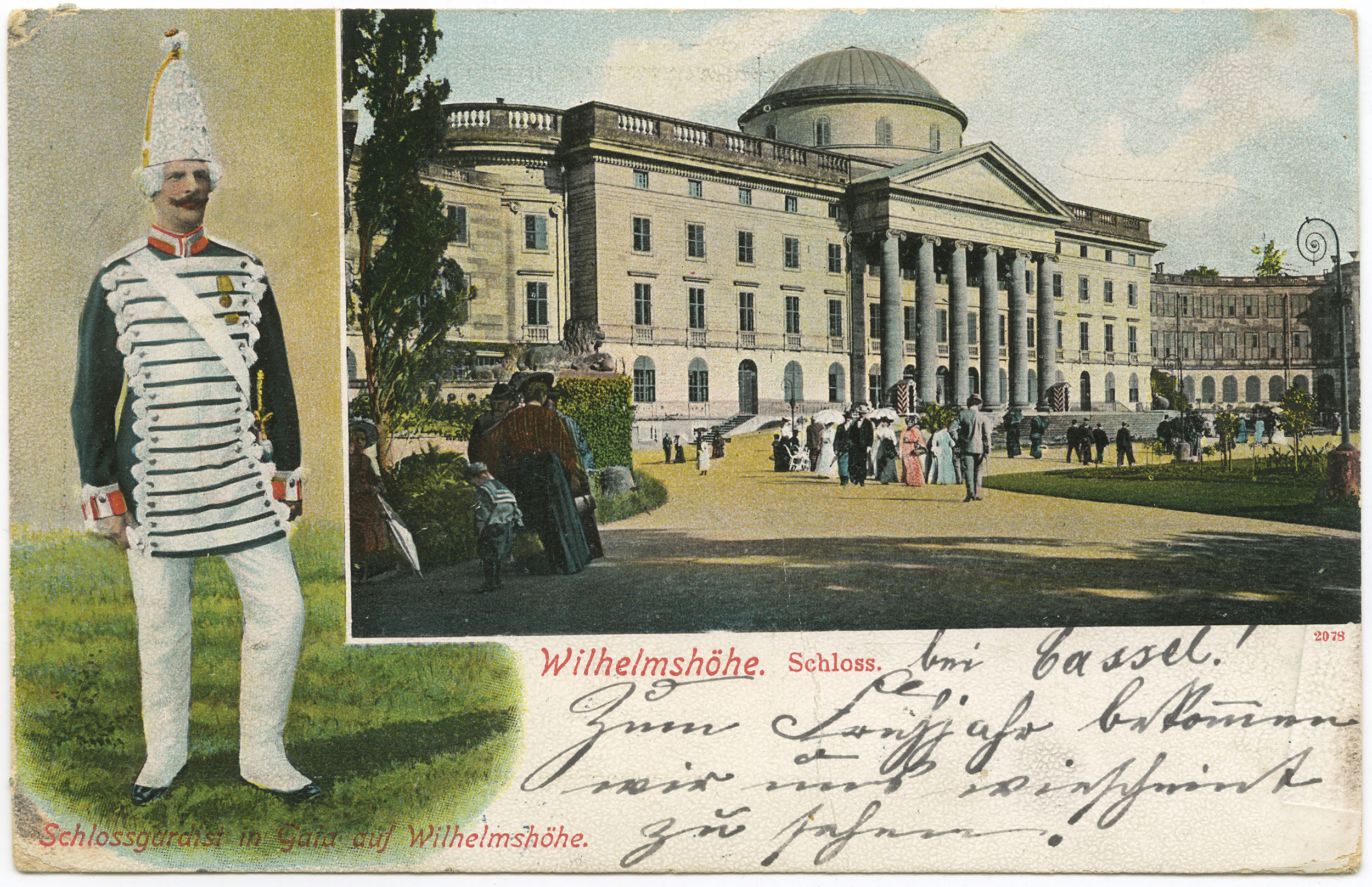 Gestempelt »Cassel-Wilhelmshöhe«, 31.1.1915«. Rückseite: »Viele herzl. Grüße aus Nordshausen sendet dir deine Hermine.« |