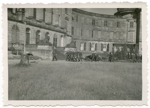 Das Schloßhotel als Militärstandort Im Zweiten Weltkrieg war das einstige Grand-Hotel Militärstandort. – Hier klicken für einen Link (→) auf einen HNA-Artikel vom 4.2.2020. Im September 2021 konnte ich für das Mulang-Archiv 22 Privataufnahmen aus der Militärstandort-Zeit des Schloßhotels erwerben. Sie stammen aus einem Fotoalbum, wie Klebereste auf der Rückseite zeigen – vielleicht aus demselben wie die Fotos aus dem Besitz des im HNA-Beitrag erwähnten Sammlers Lars Hofmann? Nur eines der Fotos (Nr.14) ist rückseitig beschriftet. |