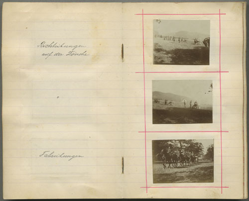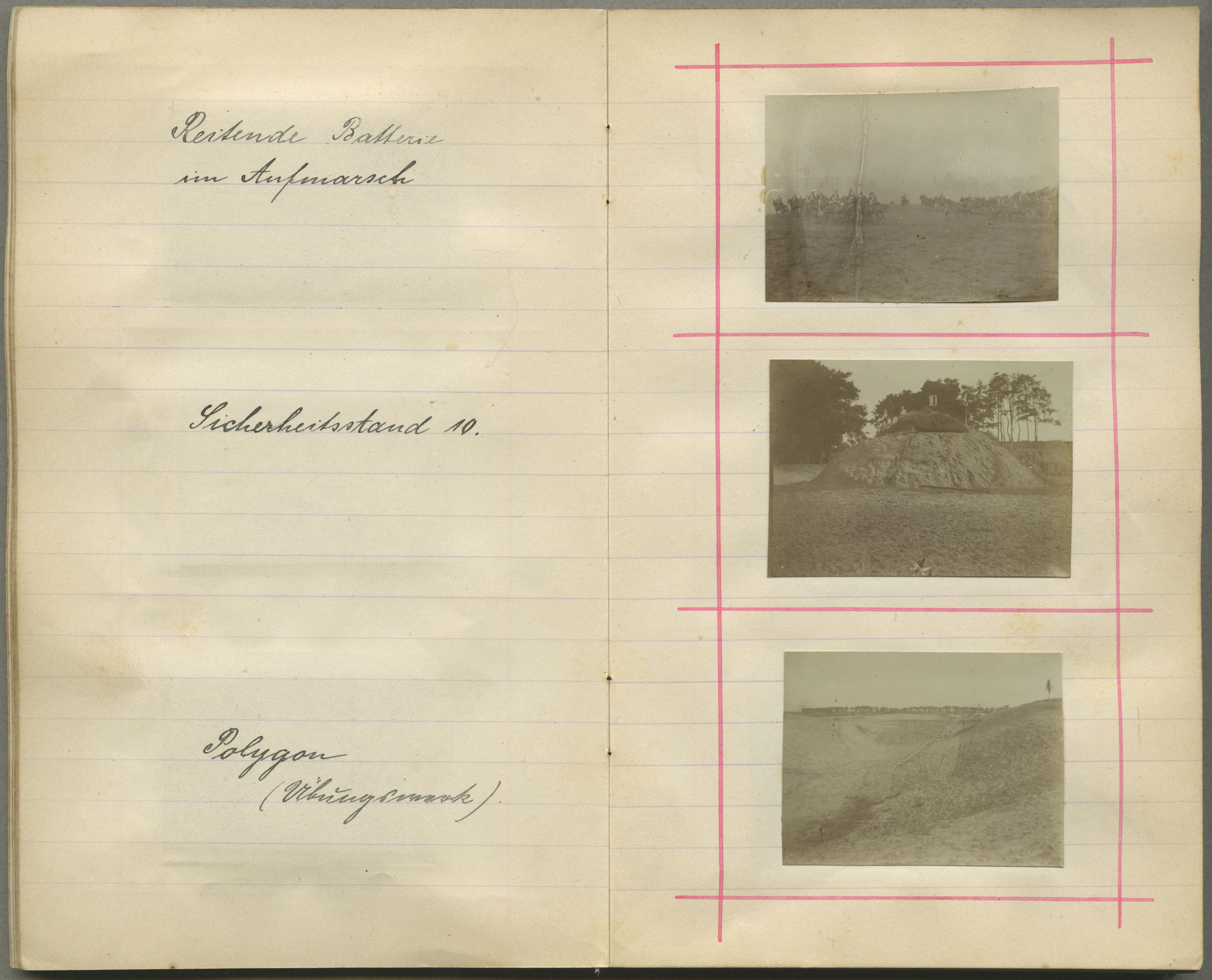24 »Reitende Batterie im Aufmarsch« »Sicherheitsstand 10« »Polygon (Übungswerk)« Hier klicken, um zu den Einzelfoto-Scans dieser Doppelseite zu springen. |