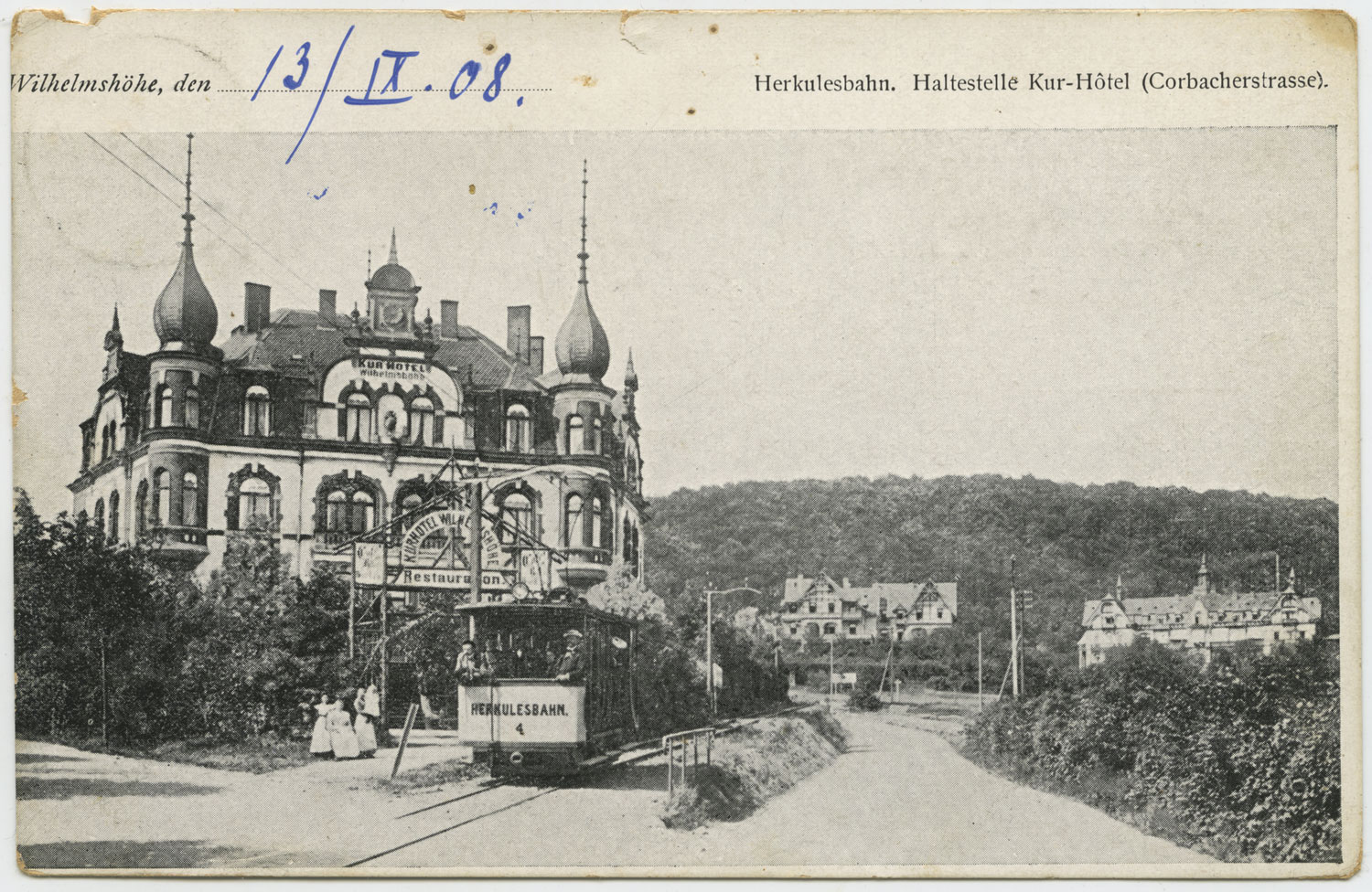 Durch technische Mängel konnte der Personenverkehr erst 1903 aufgenommen werden. Am Tage der feierlichen Eröffnung, dem 27.04.1903 standen für den Betrieb der Strecke Palmenbad – Dönche – Luisenhaus – Neuholland – Herkules drei Personentriebwagen zur Verfügung. Hiervon waren zwei als luftige Sommerwagen ausgeführt. Noch im selben Jahr mußte ein weiterer Wagen bestellt werden, um den Bedarf zu decken. Schon früh wollte Henkel seine Bahn bis zum Kirchweg erweitern, doch auch hier stieß er auf ungeahnte Hindernisse. Während die Herkulesbahn ihren Strom selbstverständlich von Henkels Elektrizitätswerk bezog, fuhr die »Große Casseler Straßenbahn AG« mit städtischem Strom. Die Stadt Kassel wollte eine direkte Konkurrenz vermeiden. Doch ab 1909 konnte man auf der neu gebauten Bahnstrecke vom Kirchweg in weniger als einer halben Stunde den Herkules erreichen – diese Zeit dürfte heute bei dem dichten Autoverkehr oder dem umständlichen Umsteigen von Bahn zu Bus nur schwer zu unterbieten sein.