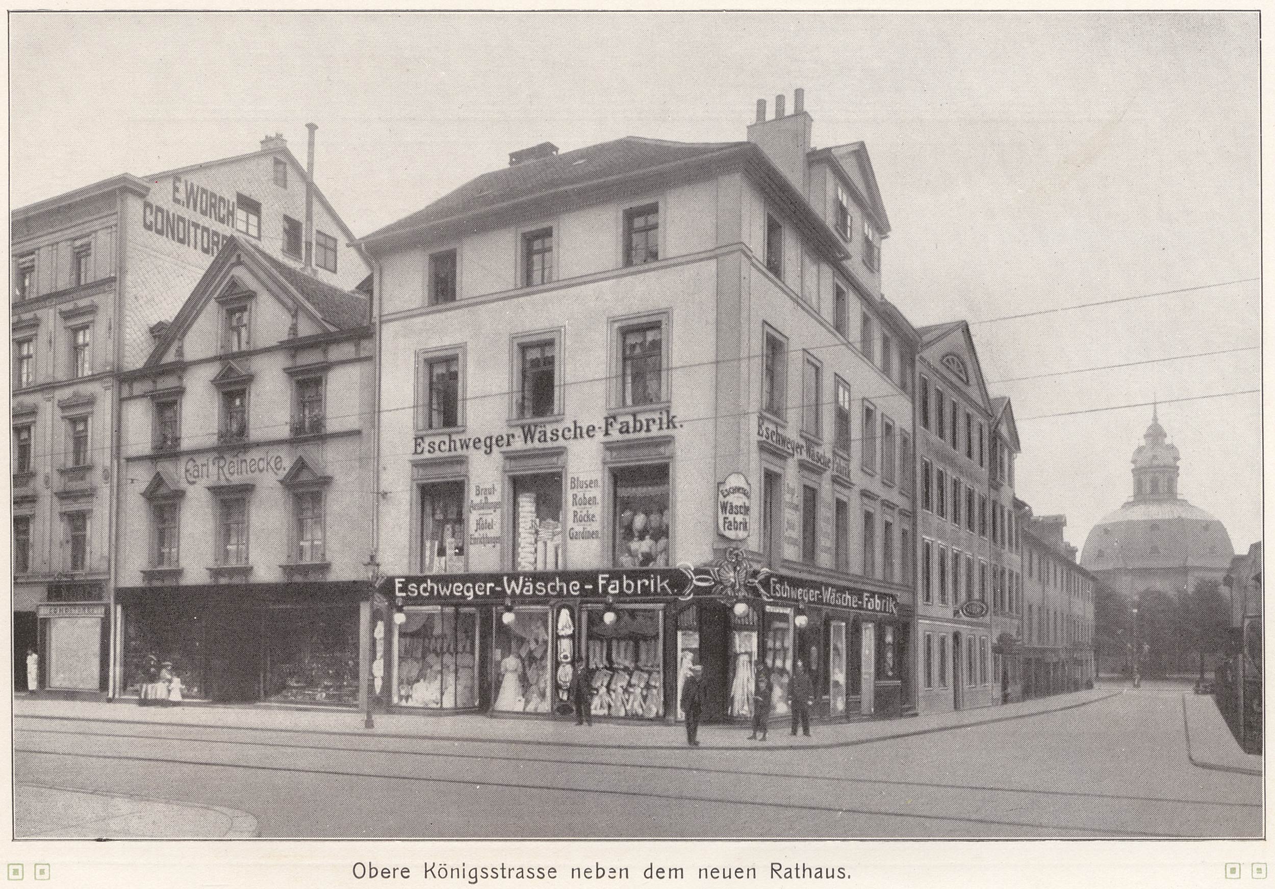 Von dem Käufer der von mir gebauten Villa Jungk am Karthäuserweg, dem Brauereibesitzer Edward Habich aus [366] Boston, der – später als Kunstmäcen hier sehr angesehen – seinen dauernden Wohnsitz in unserer Stadt genommen hatte, wurde mir der Bau eines großen Wohnhauses an der neu angelegten Hohenzollernstraße, das jetzige Eckhaus Nr. 41 an der Kronprinzenstraße, übertragen. Habich mußte seinen Bauplatz etas vergrößern und war deshalb genötigt, eine angrenzende Parzelle von Aschrott zu kaufen; er beauftragte mich, das Kaufgeschäft mit A. zu vereinbaren. Aschrott, der damals noch sein Engros-Geschäft in Segeltuchen betrieb, hatte sein Kontor in seinem Hause an der unteren Königsstraße, neben der Synagoge. Das Geschäft für Habich kam zustande, aber nicht allein mit diesem – auch mit mir wurde ein Geschäft gemacht. A. verstand es, mich zu überreden, auch ein Grundstück von ihm zu kaufen, und so kam ich in den Besitz meiner Bauplätze an der Ecke der Hohenzollern- und Bismarckstraße. Ich war einer von den ersten, der sich im Hohenzollernbiertel anbaute, außer meinen Häusern Bismarckstraße 2 und 4 stand nur das Habichsche Haus und ein weiteres, das mein Vetter Hochapfel erbaut hatte, jenseits des Karthäuserweges. Die zunehmende Bautätigkeit im Westen der Stadt veranlaßte mich, meinen Geschäftsbetrieb dorthin zu verlegen, und nachdem meine Häufer an der Bismarckstraße fertiggestellt waren, siedelte ich von der Wolfhager Straße zur Bismarckstraße über und nahm meine Wohnung in der ersten Etage des Eckhauses. Nach Anlage der Orleansstraße, zu der ich einen erheblichen Teil meines Grundstücks kostenlos an die Stadt abtrat, veräußerte ich zu günstigen Preisen nach und nach meinen dortigen Grundbesitz, den ich in Bauplätze eingeteilt hatte, ebenso mein neuerbautes Haus mit allem Zubehör an der Wolfhager Straße. So kam ich in den Besitz von Mitteln, die ich in anderweiten Bauten wieder gut anzulegen suchte. Wie ich schon im früheren erwähnte, hatte ich mich in Gemeinschaft mit Vetter Hochapfel an der oberen Sophienstraße angekauft. In dieser schönen freien Tage glaubten wir mit [367] der Erbauung von Einfamilienhäufern à la Bremen ein gutes Geschäft zu machen; wir bauten deshalb sieben aneinanderstoßende villenartige Häuser nach einem Eubellschen Projekt – die »sieben Raben«, wie sie getauft wurden. Bei diesen Häusern fanden die fertigen Steinhauerarbeiten Verwendung, die ich vom Jagdschloß des Prinzen Heinrich von Hanau, am Burgberg bei Großenritte, zurücknehmen mußte. Ich hatte nämlich an diesem Schloßbau, der nach den Plänen der Leipziger Architekten Roßbach und Lüders erbaut wurde, die Ausführung der Maurer- und Steinhauerarbeiten übernommen, mußte aber die Arbeiten während des Baues wieder einstellen, weil die Fürstin von Hanau, des Prinzen Mutter, zum Weiterbau kein Geld mehr herausrücken wollte. Ein großer Teil der Steinhauerarbeiten war aber schon fertig und zum Teil schon versetzt, und diese auf meine Forderung mir in Anrechnung gebrachten Arbeiten schaffte ich nach Cassel, um sie an den oben genannten Häusern wieder zu verwerten. Aus den verbliebenen Resten des Schloßbaues ist nachher das »Gertrudenstift« erstanden. |