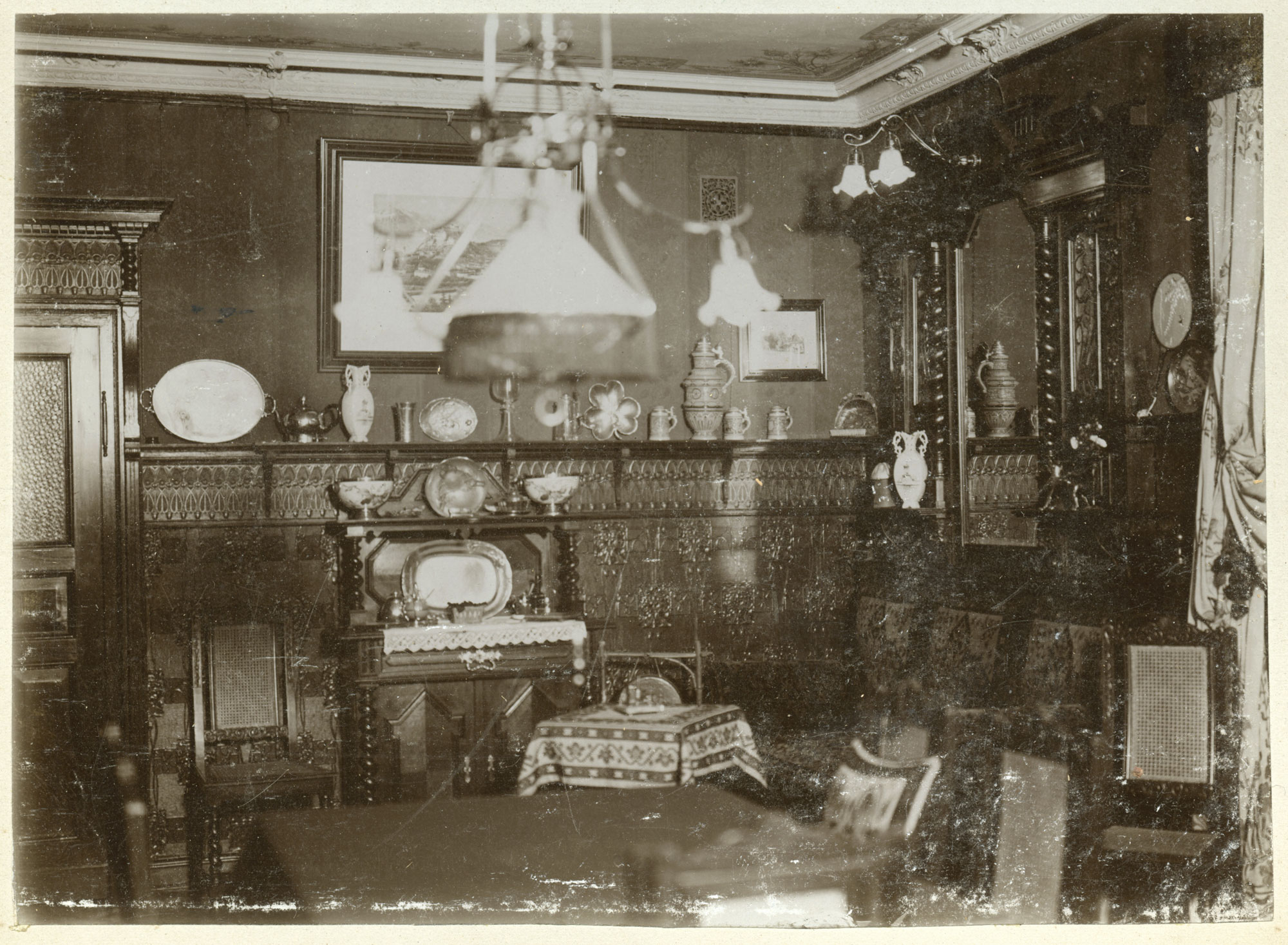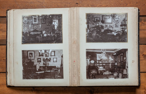 9 Links: Die Familie beim Haus Burgfeldstraße 8. Rechts: Interieur-Aufnahme aus der Schmidtmann-Villa, Burgfeldstraße 8. Hier klicken, um zu den Einzelfoto-Scans dieser Doppelseite zu springen. |