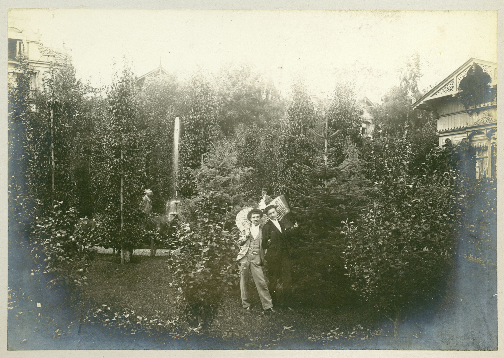 12.2 Die Villa Mummy ist fertig, der Garten wir angelegt. Das prächtige Haus wurde in den 1930er Jahren Kurhaus, in den 1950ern erneut. Es wurde 1970 barbarisch abgerissen. – Ganz rechts im Wald die Kurhausstraße 1, ein Haus, das schon vor der Villenkolonie-Gründung stand und Schmidtmanns Vetter und Freund Louis Hochapfel gehörte. |