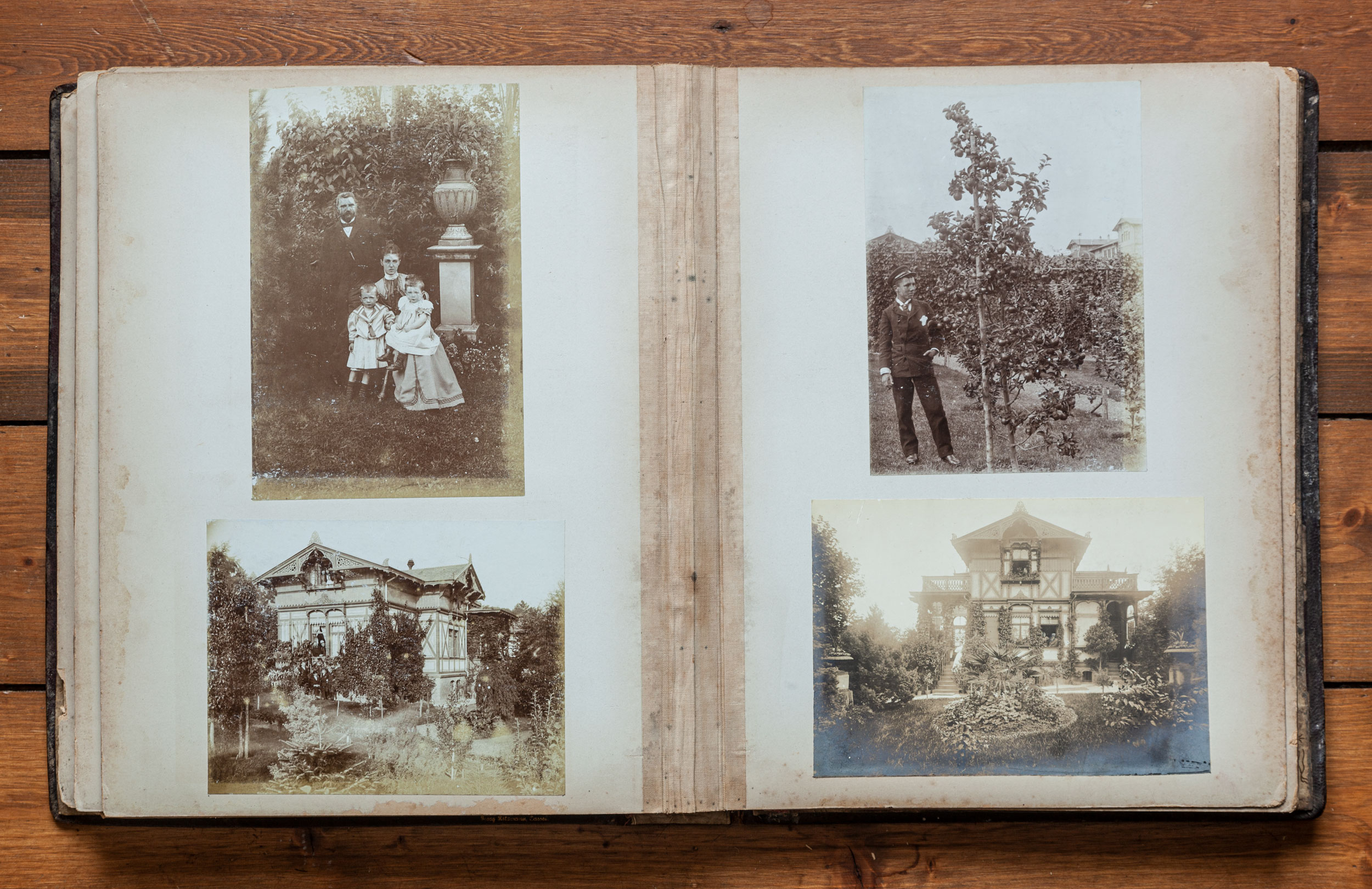 16 Links oben: Blick aus dem Schmidtmannschen Sommerhaus, Wigandstraße 4, nach Süden. Rechts hinten die Kuranstalt Dr. Greger, Burgfeldstraße 17. Links unten: Wigandstraße 4 von Süden. Rechts oben: Wigandstraße 4, Ostseite, also Straßenseite. Rechts unten: Familienbild. Hier klicken, um zu den Einzelfoto-Scans dieser Doppelseite zu springen. |