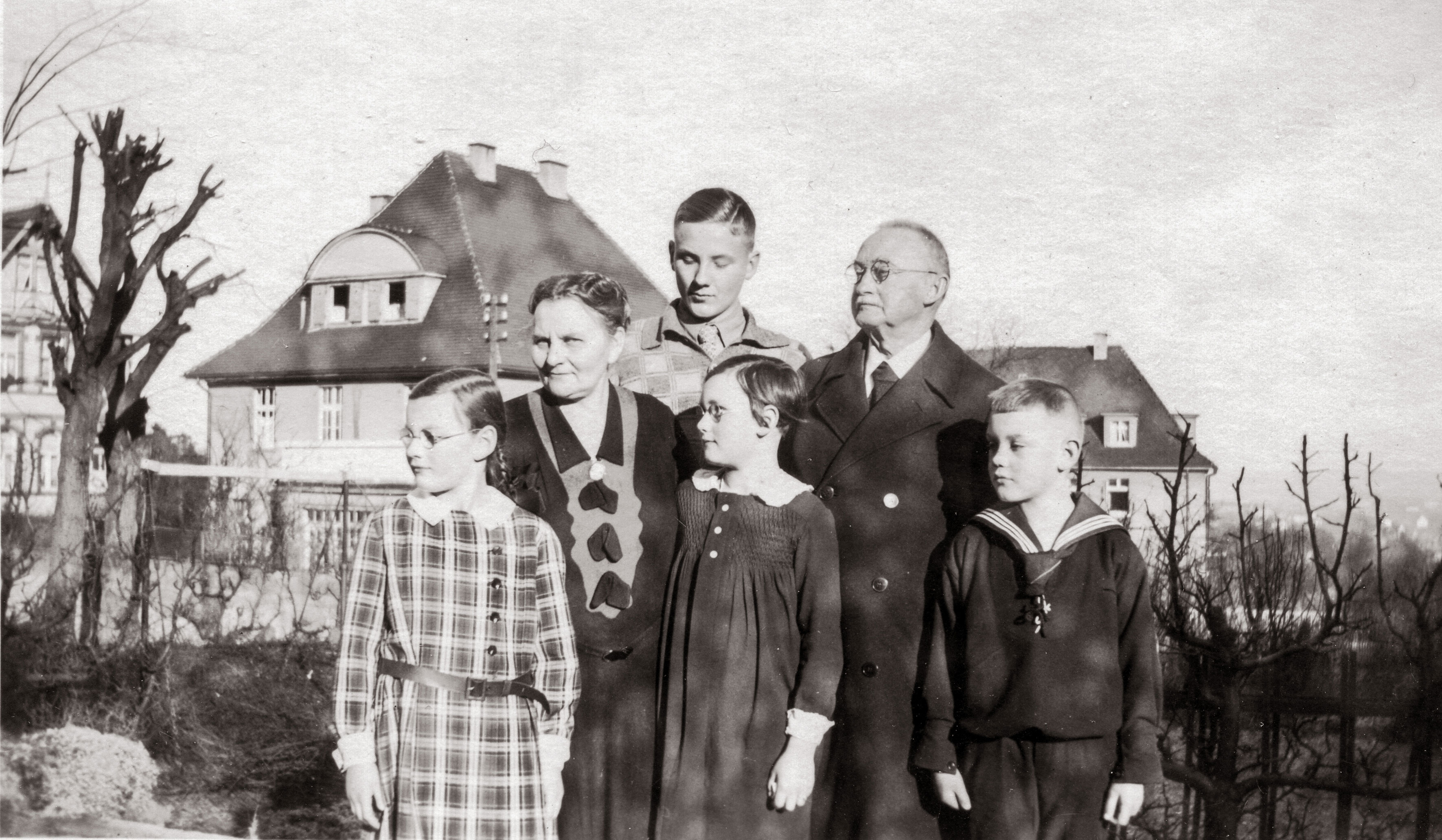 Fremdenverkehrsprospekt von ca. 1934: »Erstklassiges Haus in bester Lage, Bad, flW., Gar., Kaffee-Konditorei-Restaurant.« ![]() »Vor dem ›Fernblick‹«, 1932/33, aus dem Fotoalbum einer Schülerin des Töchterheims Luisenhaus I.*MA |