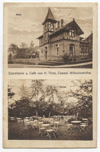Hier klicken für die Anzeigenseiten aus »Augustins Reisehandbücher Nr. 5 – Habichtswald und Langenberg« von ca. 1910 (es ist dort das rote Büchlein in der linken Spalte). Darin eine Anzeige des Pensionshauses (»... Wöchentlich dreimal Militärkonzerte ...«).*MA