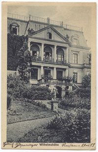 Die Nr. 5 war als Hotel unter dem Namen »Pensionshaus Wilhelmshöhe« im Jahre 1872/73, also noch vor der Gründung der Villenkolonie, erbaut worden. Im Teil »Panorama-Aufnahmen« weiter oben kann man sehen, wie das Haus neben der Klinik Dr. Greveler das Fernbild der Villenkolonie bestimmte, für welche das Hotel samt dazugehörigen Infrastruktur-Maßnahmen den entscheidenden Entwicklungsschub gab. Bereits 1870 hatte