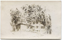 Mulang Nr. 3 (Nr. 8) →Google-Maps Die Bilder konnte ich lange nicht zuordnen. Wieder einmal kam die Lösung von Dr. Christian Presche: »Es handelt sich (in der heutigen Zählung) um Mulangstraße 3 (die zeitweilige Saalwächter-Wohnung), bevor das Haus in den 1920er Jahren durchgreifend umgebaut und erweitert wurde. Von diesem früheren Zustand vor dem Umbau sind mir sonst kaum Bilder bekannt; bei der MHK liegen gar keine Aufnahmen vor, im Stadtmuseum gibt es zumindest ein kleines, sonst unbezeichnetes Repro-Dia (25/13/26, Mulang, Kaffeehäuschen), das anscheinend einen Ausschnitt aus der Bildvorlage der zweiten [hier: ersten] Postkarte zeigt, und die Postkarte der ›Bagatelle‹ als Café [siehe das erste Foto bei »Mulang Nr. 2«] zeigt im Hintergrund rechts das Gebäude noch vor dem Umbau, angeschnitten, mit der charakterischen mittigen Dachgaube, die z.T. aber von dem Baum am rechten Bildrand verdeckt wird.« |