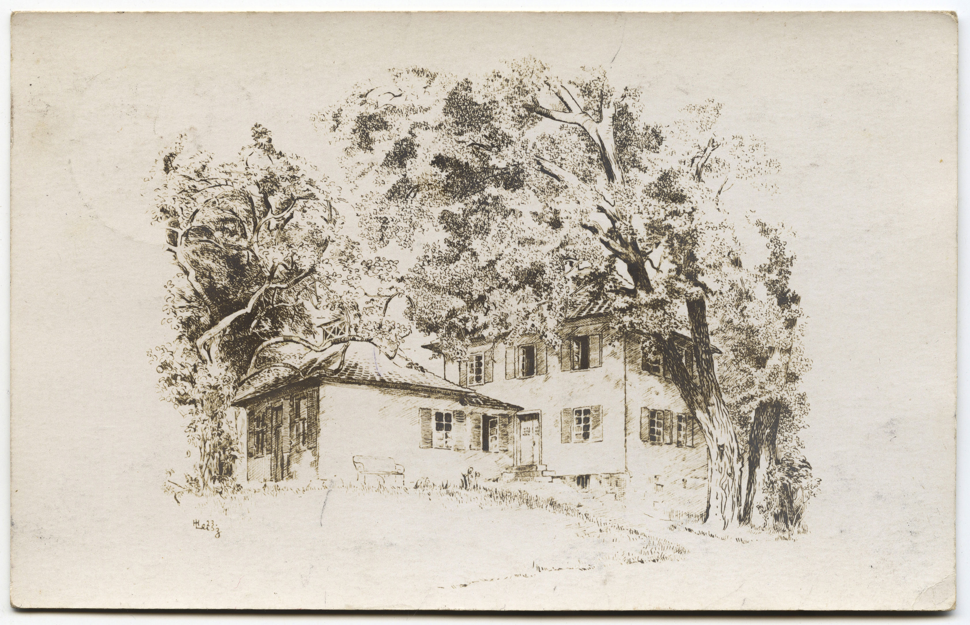 ![]() Ca. 1875: Der »Gasthof Schweizerhaus«, erbaut als Kurheim von Dr. Schmidt ca. 1867, ganz am oberen Ende der heutigen Mulangstraße, auf dem Weg zur Einmündung des Anthoniweges. Nicht erhalten. (→) *14 |